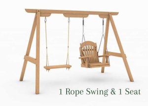 We’ve watched the video. We like the idea. The RHS Trilogy Swing Seat from Sitting Spiritually allows you to configure two seats together: two rope swings, two more substantial chairs, or one of each. So grandparent could sit alongside grandchild and swing together.